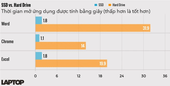 Đây là giải pháp đầu tiên mà bạn nên nghĩ đến khi muốn cải thiện hiệu suất máy tính, đặc biệt là những thiết bị đã có tuổi đời hơn 3 năm. So với ổ cứng HDD truyền thống, ổ SSD cho tốc độ mở ứng dụng, xử lý công việc hay tắt/bật máy tính nhanh hơn trước gấp nhiều lần.
