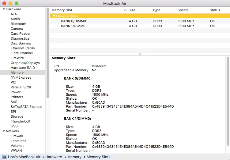 Nếu đang sử dụng MacBook, bạn bấm vào biểu tượng Apple ở góc trên bên trái, chọn About this Mac > System Report > Memory > Slot. Nhiều người thường nghĩ rằng RAM càng cao thì máy tính sẽ chạy càng nhanh, tuy nhiên việc này hoàn toàn sai lầm bởi nó sẽ gây ra tình trạng nghẽn cổ chai.