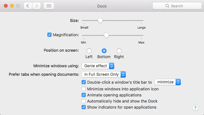 Đối với MacBook, bạn vào System Preferences > Dock và tắt bớt các hiệu ứng phóng đại, ảnh động trong quá trình sử dụng.