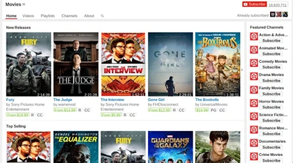 Bạn có thể xem cả những phim chính thống đầy đủ trên Youtube bằng cách vào trang Movies. Nếu chịu khó tìm, bạn có thể xem các phiên bản miễn phí.