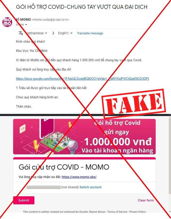 Mới đây, một số người dùng MoMo đã phản ánh về việc nhận được email với nội dung: "Ví điện tử MoMo xin gửi đến quý khách hàng 1 triệu đồng để chung tay vượt qua đại dịch. Vui lòng truy cập vào địa chỉ...".