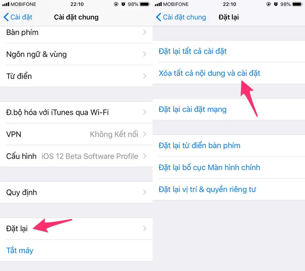 Xóa tất cả nội dung và cài đặt trước khi gửi máy đi sửa lỗi. Ảnh: MINH HOÀNG
