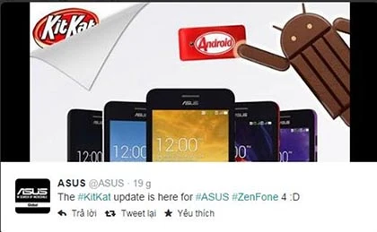 Chỉ vài giờ sau khi phát hành bản cập nhật cho ZenFone 4, Asus cũng đã tung ra bản cập nhật Android 4.4 KitKat cho bộ đôi ZenFone 5 và ZenFone 6. Bản cập nhật này hiện đang có mặt tại Trung Quốc và Đài Loan nhưng Asus cho biết sẽ nhanh chóng phát hành ra các thị trường Châu Á khác. Với bản cập nhật này, nhiều tính năng mới sẽ được bổ sung như chặn cuộc gọi, chế độ Do Not Disturb...