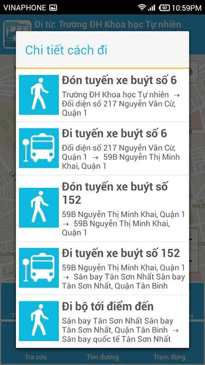 Nếu bạn muốn đi nhiều tuyến thì nên sử dụng chức năng Tìm đường. Chỉ cần nhập vào điểm đầu cuối là BusMap sẽ gợi ý cho bạn các tuyến xe cần bắt và cách đi gần nhất. Phần mềm có thể đưa ra đến 20 gợi ý khác nhau kèm theo những lời mô tả rất chi tiết và trực quan thông qua bản đồ, giúp người sử dụng không lo bị lạc đường.