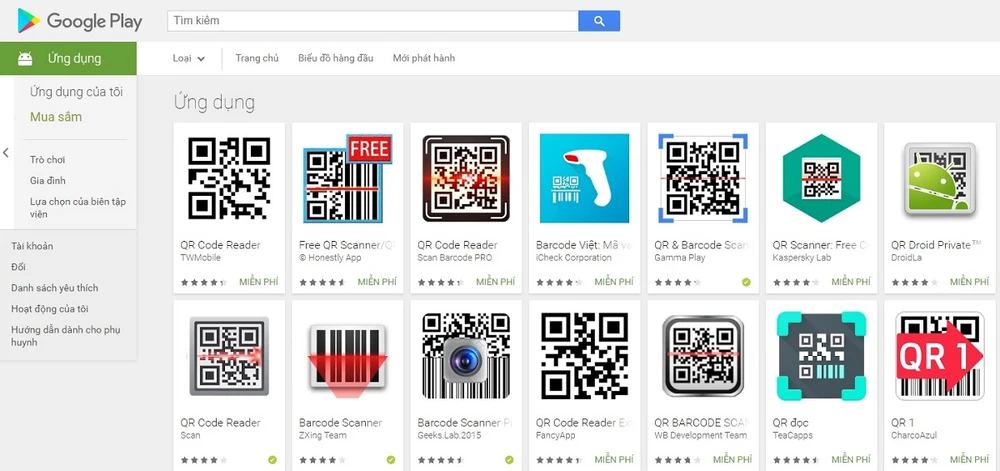 Google Play Store có rất nhiều ứng dụng hỗ trợ đọc, tạo mã QR