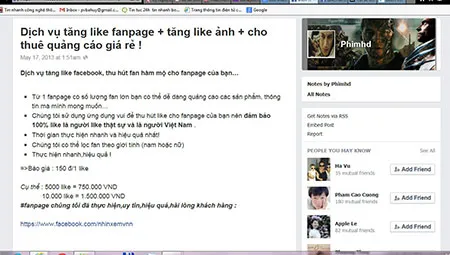 Mặc dù đã xuất hiện cách đây vài năm, thế nhưng hình thức kinh doanh like trên Facebook vẫn đang có giá. Nguyên nhân là ngày càng có nhiều người muốn nhanh chóng được nổi tiếng trên mạng.