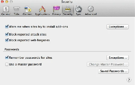 Nên Mozilla đã có một tính năng mới bổ sung gọi là Master Password. Tính năng này yêu cầu người dùng phải điền một mật khẩu để truy cập vào mật khẩu đã được lưu. Khi bạn đã cài đặt xong Master Password, tất cả người dùng muốn truy cập vào các thông tin đăng nhập được lưu trong trình duyệt của bạn bị yêu cầu phải điền mật khẩu này. Họ sẽ không thể thấy thông tin nào của bạn nếu điền sai mật khẩu.