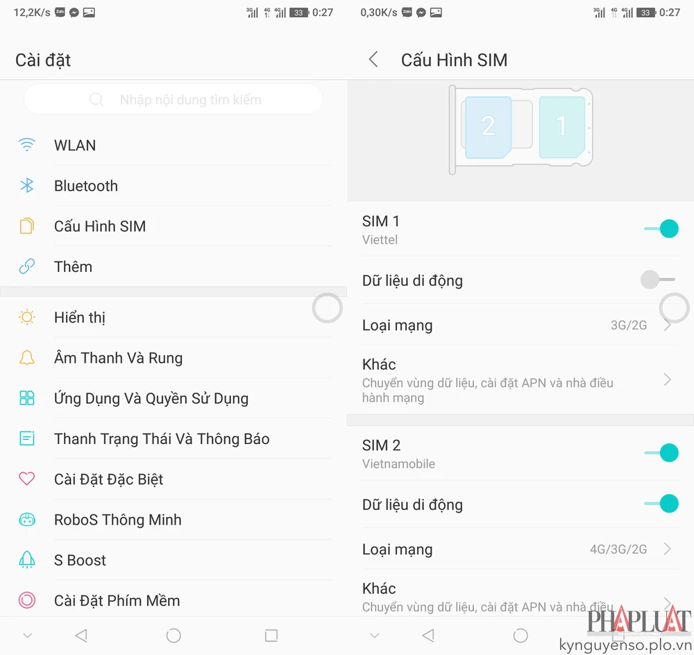 Tiếp theo, bạn hãy truy cập vào mục Settings (cài đặt) > SIM config (cấu hình SIM), chọn SIM Vietnamobile rồi nhấn vào mục Network type (loại mạng) và thiết lập thành 4G/3G/2G. Lưu ý, tên và vị trí các tùy chọn có thể thay đổi tùy vào thiết bị bạn đang sử dụng. Tương tự, nếu đang sử dụng iPhone, người dùng chỉ cần vào Settings (cài đặt) > Cellular (di động) > Cellular Data Options (tùy chọn dữ liệu di động) > Voice (thoại) > 4G hoặc LTE.