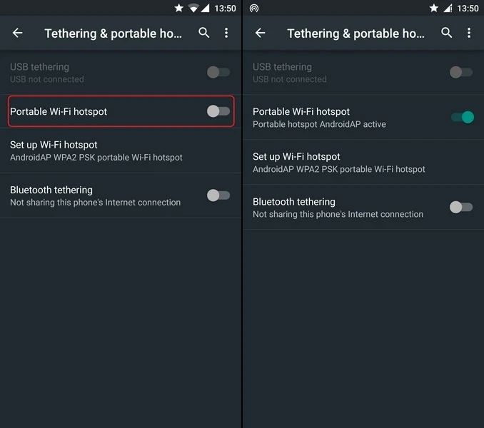 Bạn sẽ có thấy nút bật/tắt "Portable Wi-Fi hotspot"? Hãy chạm vào nó nếu bạn muốn bật tính năng chia sẻ dữ liệu của bạn.