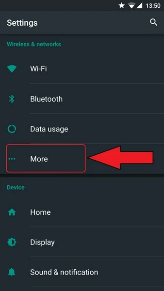 Đầu tiên bạng vào Settings và bấm vào "More" tùy chọn trong phần đầu tiên của menu.