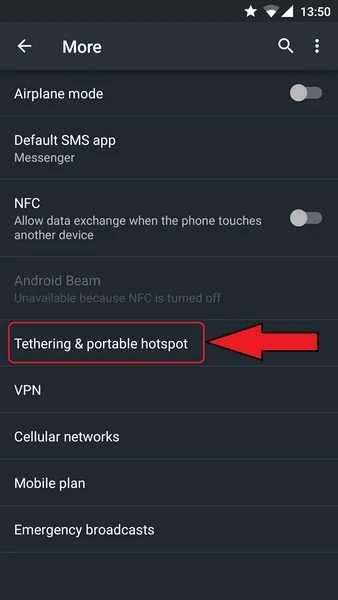 Tiếp theo, đi đến tùy chọn "Tethering & portable hotspot".