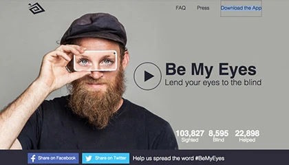 Be My Eyes là ứng dụng để đám đông có thể hỗ trợ người khiếm thị thông qua liên lạc âm thanh – video trực tiếp. Nó cho phép người khiếm thị gọi xin giúp đỡ, và người dùng ở xung quanh nếu có sẽ chỉ dẫn người khiếm thị thông qua những gì họ thấy ở camera trước.