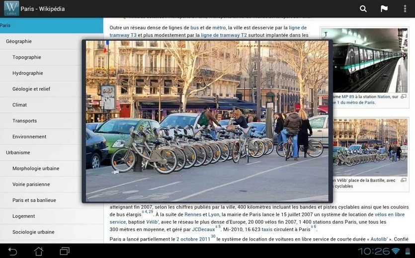 Nếu muốn truy cập trực tiếp Wikipedia mà không cần phải mở trình duyệt thì bạn nên cài đặt ứng dụng Wikipedia for tablet. Ứng dụng này sẽ tập trung vào các nội dung mới nhất, cùng với một thanh hiển thị trên đầu trang, cho phép bạn chuyển đổi qua lại giữa các thông tin hoặc các phần trong bài viết dễ dàng hơn.