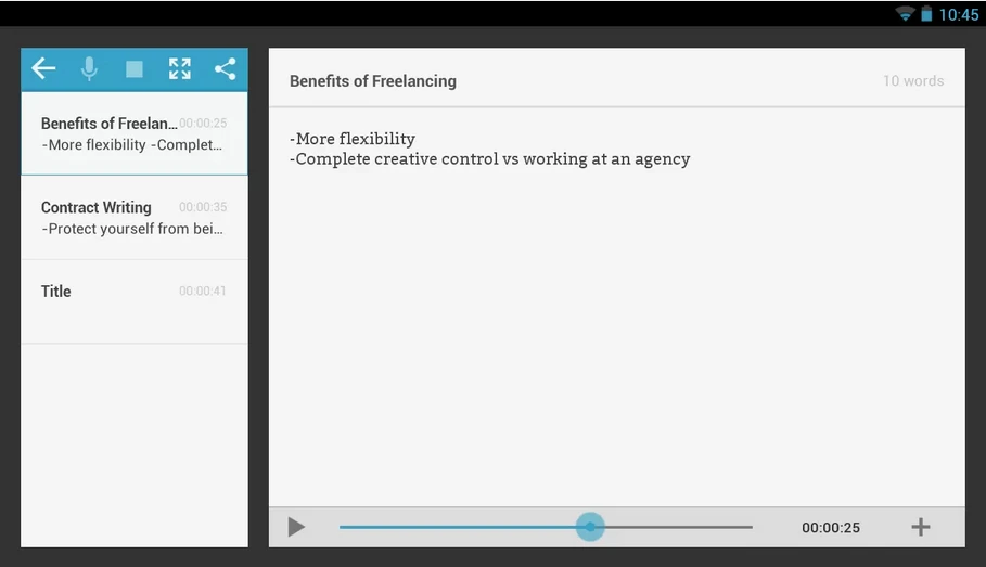Nếu trường cho phép sử dụng máy tính bảng hoặc điện thoại trong lớp, thì bạn nên cài đặt TapNotes – Meeting Recoder ngay lập tức. Ứng dụng này cho phép người dùng ghi lại tất cả mọi thứ âm thanh và viết các chú thích đi kèm, giúp cho việc nghe giảng được hoàn hảo hơn. Tất nhiên, bạn có thể tua đi tua lại nhiều lần tại một phần bài giảng bất kì để nghe kĩ hơn thông qua các nút FF và RW.