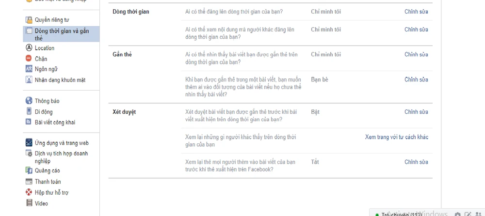 Để kiểm soát điều này, hãy truy cập vào phần Cài đặt trên chính Facebook. Sau đó, chọn Dòng thời gian và gắn thẻ rồi chỉnh sửa các tùy chọn mặc định sang chế độ mà mình mong muốn.