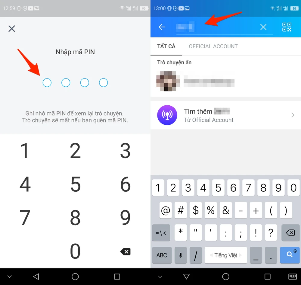 Khi hoàn tất, những tin nhắn này sẽ biến mất khỏi giao diện Zalo. Nếu muốn xem lại, bạn chỉ cần nhập tên người đó trên thanh tìm kiếm, sau đó điền mã PIN tương ứng để mở tin nhắn. Lưu ý, để thay đổi mã PIN, người dùng có thể vào phần cài đặt trên Zalo, chọn mục Tin nhắn > Ẩn trò chuyện và làm theo các bước hướng dẫn.