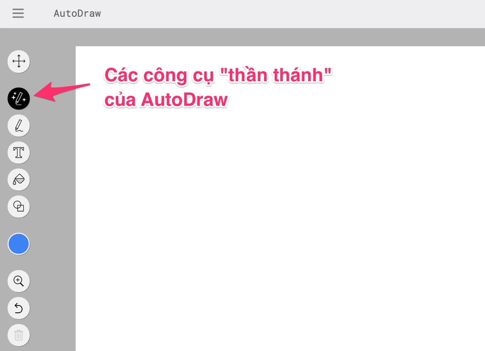 AutoDraw hiện tại đang được cung cấp hoàn toàn miễn phí tại địa chỉ https://www.autodraw.com/. Để sử dụng, bạn chỉ cần nhấn vào nút Start Drawing để bắt đầu. Cột bên trái sẽ bao gồm các công cụ dùng để vẽ, thêm văn bản, thêm các đối tượng hình dạng hoặc đổ màu cho đối tượng…