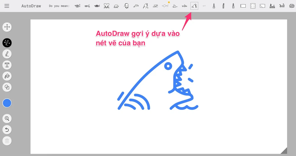 Khi vẽ vài nét đơn giản, bạn sẽ thấy xuất hiện ở phía trên là những hình gợi ý, người dùng chỉ cần bấm vào để sử dụng, sau đó tô màu hoặc chỉnh sửa tùy thích. Tất nhiên, bạn hoàn toàn có thể sử dụng công cụ này thông qua trình duyệt trên máy tính, smartphone hoặc tablet.