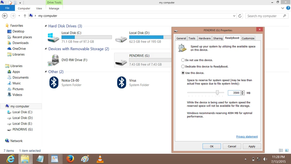 - Bước 3: Khi hoàn tất, bạn nhấn phải chuột lên USB và chọn Properties, chuyển sang thẻ ReadyBoost > Use This Device, tùy chỉnh dung lượng RAM cần sử dụng rồi nhấn Apply > OK để lưu lại. Cuối cùng, người dùng chỉ cần khởi động lại máy tính để áp dụng các thay đổi.
