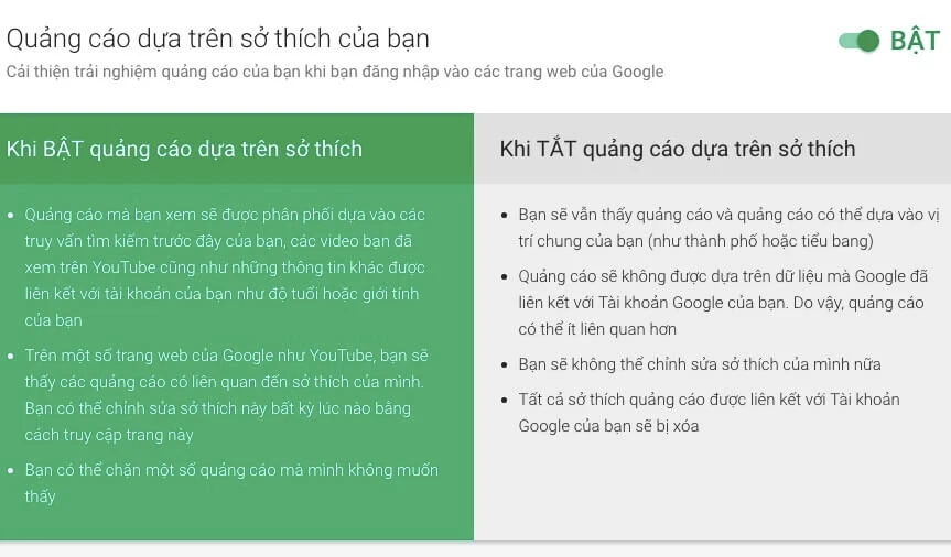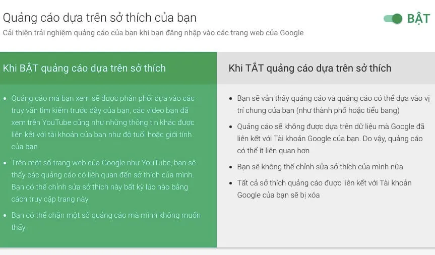 Tắt quảng cáo dựa trên sở thích cá nhân. Ảnh: MINH HOÀNG