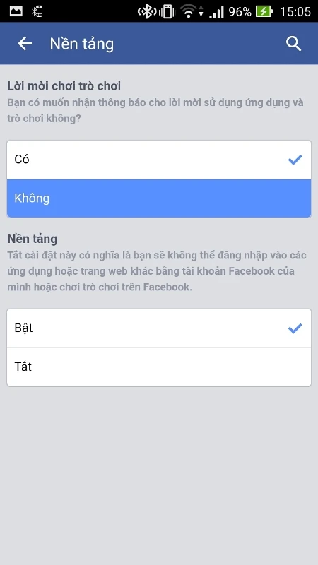 Bước 4: Chọn không trong phần lời mời trò chơi để tắt lời mời đi
