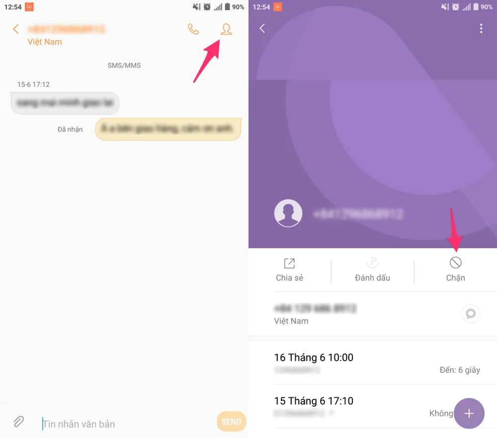 Đa số các smartphone hiện nay đều được tích hợp sẵn tính năng chặn tin nhắn và cuộc gọi quấy rối. Đầu tiên, bạn hãy mở tin nhắn hoặc cuộc gọi cần chặn, bấm vào biểu tượng menu ở góc trên bên phải và chọn Block (chặn) > OK. Kể từ lúc này, những tin nhắn hoặc cuộc gọi xuất phát từ số điện thoại trên sẽ bị tự động từ chối hoặc không hiển thị thông báo trên màn hình.