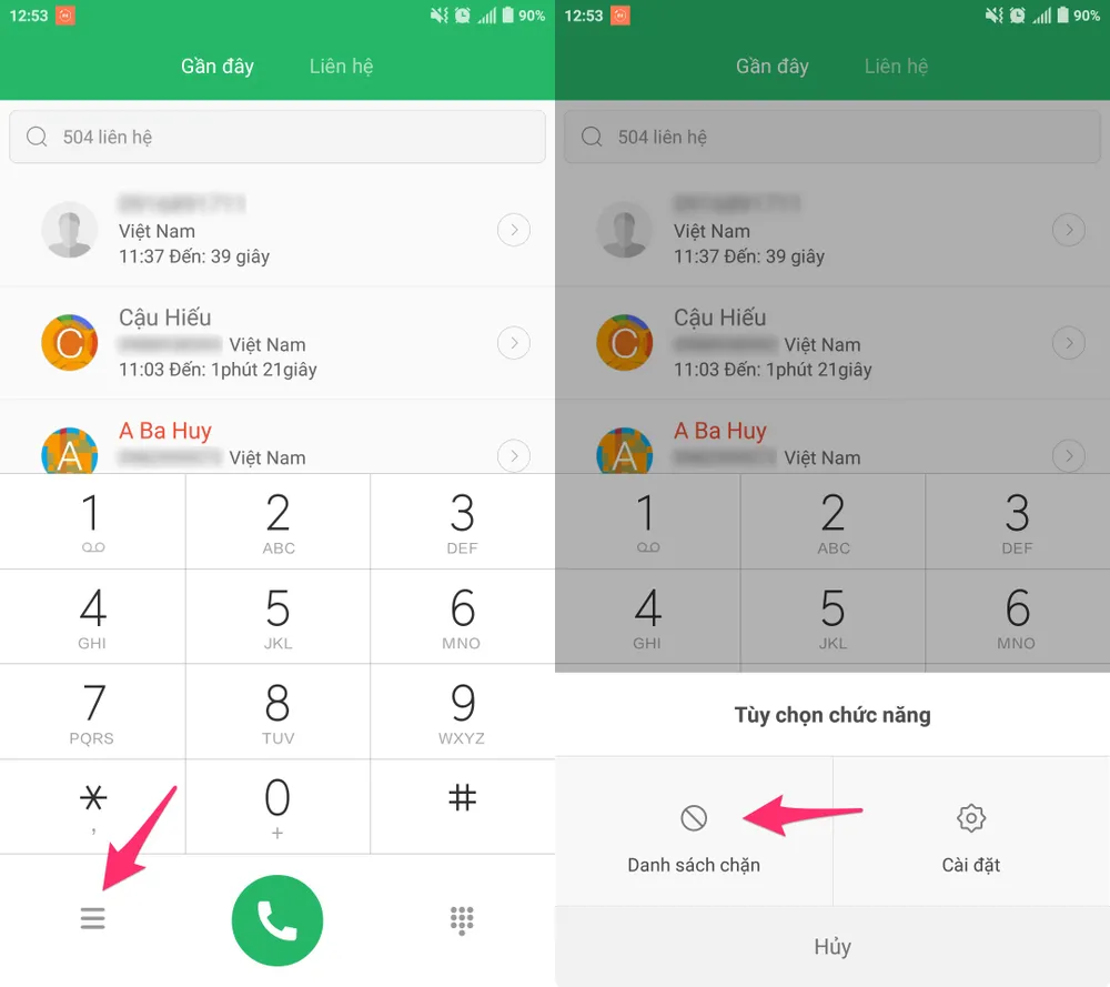 Để xem lại các tin nhắn bị chặn, người dùng chỉ cần mở ứng dụng Phone (điện thoại), bấm vào biểu tượng menu ở góc trái bên dưới và chọn Block list (danh sách chặn).