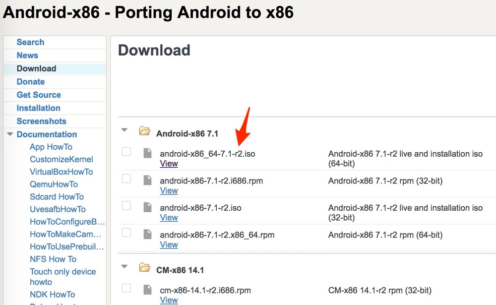 Đầu tiên, bạn truy cập vào địa chỉ http://www.android-x86.org/download và tải về tập Android-x86 7.1-r2 live and installation iso (64-bit). Lưu ý, tại đây có rất nhiều phiên bản để bạn lựa chọn, tuy nhiên, người dùng nên tải bản cài đặt 64-bit để có được trải nghiệm tốt nhất.