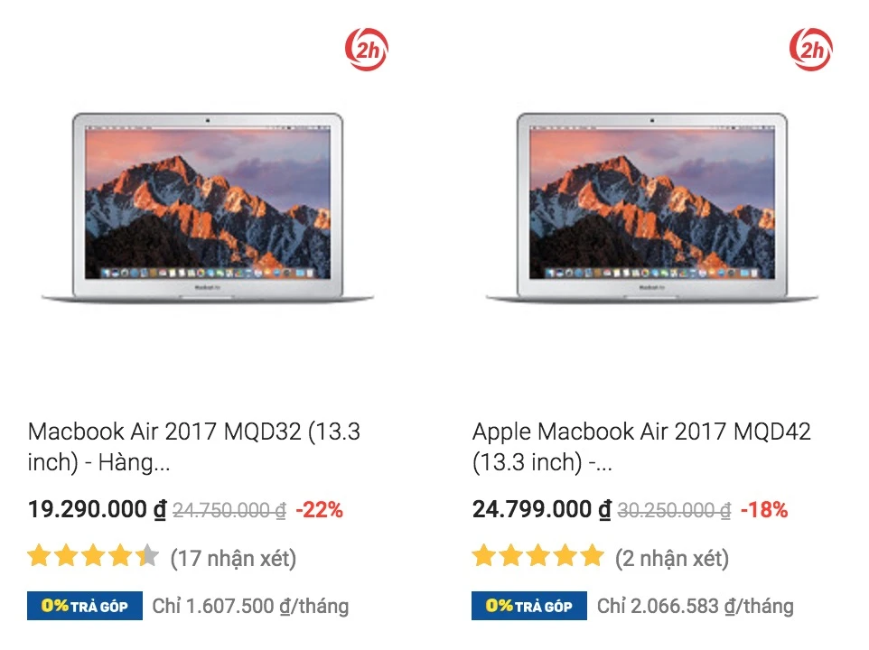Theo đó, khi mua MacBook Air 13 inch (2017), bạn sẽ được giảm ngay 4 triệu đồng. Cụ thể, phiên bản MacBook Air 13 inch (ổ cứng 128 GB) sẽ có giá 19,99 triệu đồng. Tương tự, phiên bản có ổ cứng 256 GB đang được bán ra với mức giá 24,99 triệu đồng. Cả hai mẫu thiết bị này đều đã được giảm 4 triệu so với giá trước đó.