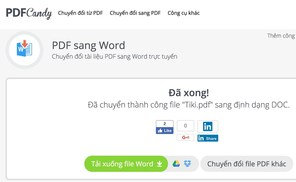 - Bước 4: Khi hoàn tất, người dùng có thể tải xuống hoặc đồng bộ tập tin lên Google Drive, Dropbox chỉ với một cú nhấp chuột.