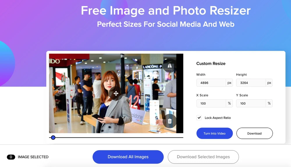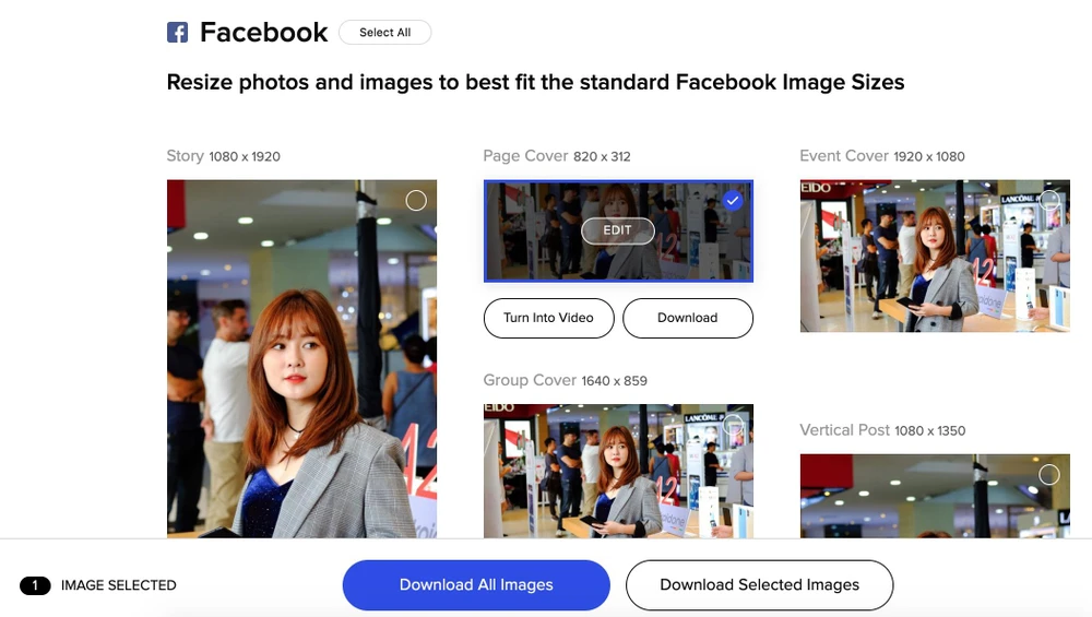 Dịch vụ Image Resizer của Promo sẽ tự động thay đổi kích thước đúng chuẩn với từng nền tảng mạng xã hội. Người dùng có thể dễ dàng tải xuống những tấm ảnh cần sử dụng hoặc tải toàn bộ chỉ với một cú nhấp chuột.