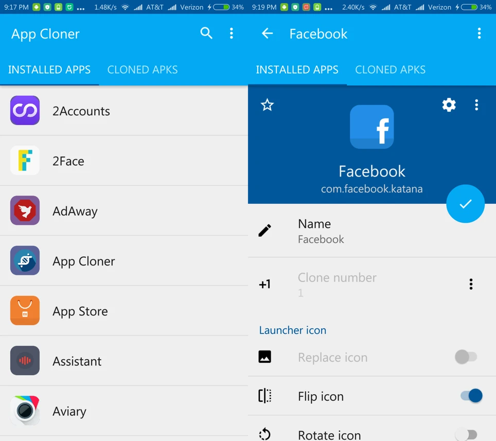 App Cloner có cách thức hoạt động tương tự như Parallel Space, tuy nhiên nó cho phép người dùng tùy biến thêm về màu sắc và kiểu hiển thị.