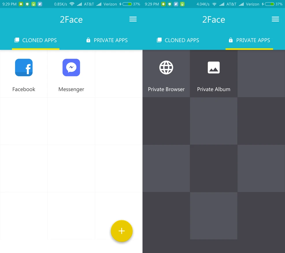 2Face có giao diện đơn giản và dễ sử dụng, đặc biệt là khả năng tiết kiệm pin tốt hơn so với các ứng dụng khác. Người dùng có thể nhân bản bất kỳ ứng dụng nào đã được cài đặt trên máy tại mục Cloned Apps.