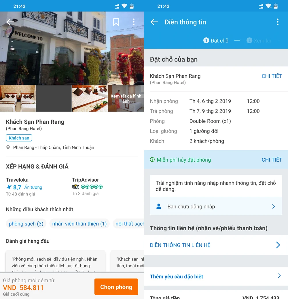 Khi nhấp vào một khách sạn bất kì, bạn sẽ biết được giá tiền, hình ảnh, thông tin vị trí, các dịch vụ ưu đãi cũng như đánh giá của người dùng trước đó. Nếu thấy ưng ý, bạn chỉ cần nhấn Chọn phòng, cung cấp thông tin và làm theo các bước hướng dẫn cho đến khi hoàn tất.