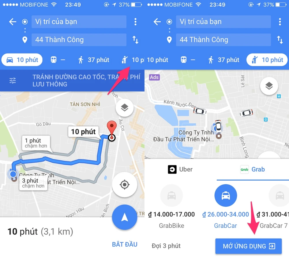 Đặt nhanh xe Uber hoặc Grab thông qua Google Maps. Ảnh: MINH HOÀNG