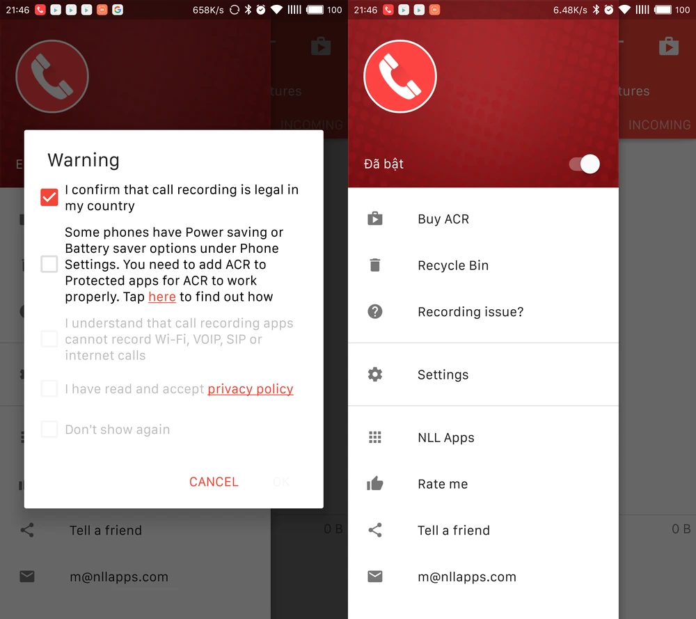 Đầu tiên, bạn hãy tải và cài đặt ứng dụng ACR cho smartphone Android tại địa chỉ https://goo.gl/u0SjJy. Khi hoàn tất, biểu tượng của ứng dụng sẽ xuất hiện trên thanh thông báo và tự động ghi âm lại tất cả cuộc gọi đến/đi.