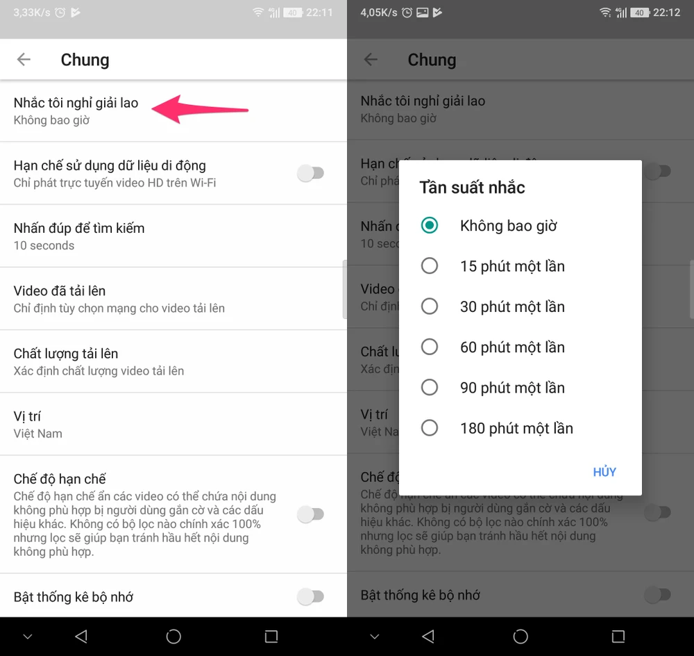 Về cơ bản, tính năng Remind me to take a break (nhắc tôi nghỉ giải lao) chỉ có tác dụng nhắc nhở nghỉ ngơi đơn thuần chứ không thể giới hạn thời gian xem video.