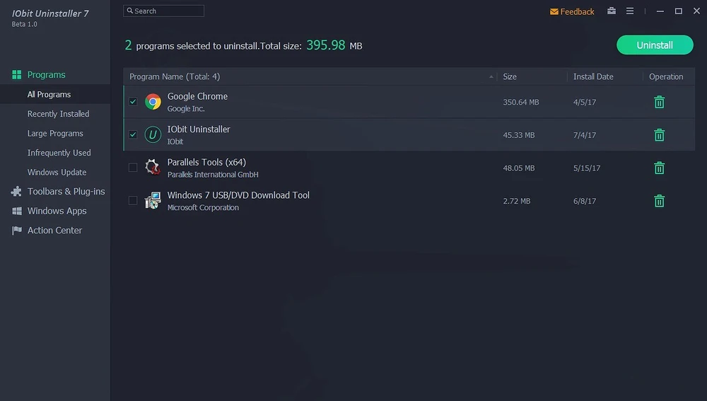 Ưu điểm của IOBit Uninstaller 7.7