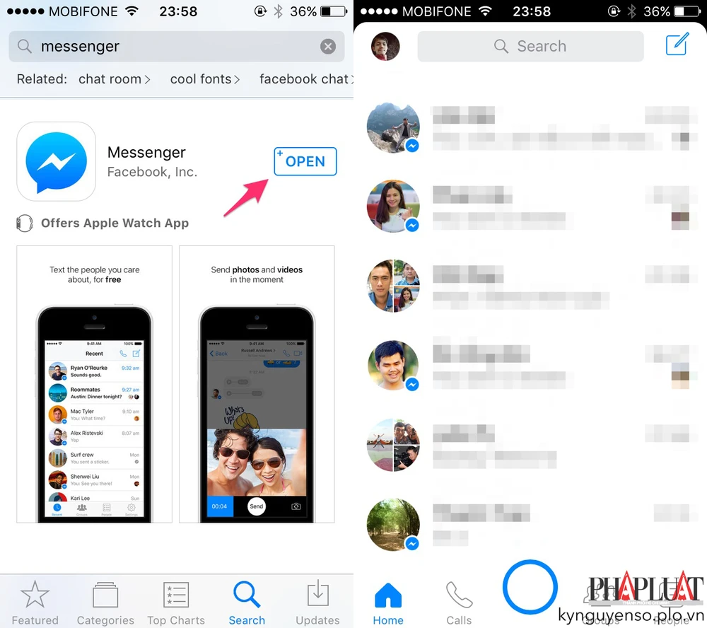 - Bước 1: Đầu tiên, bạn hãy cập nhật ứng dụng Messenger lên phiên bản mới nhất thông qua App Store hoặc Google Play, nếu chưa có, người dùng có thể cài đặt tại địa chỉ https://goo.gl/0I8mtD (iOS) và https://goo.gl/wEyfq (Android).