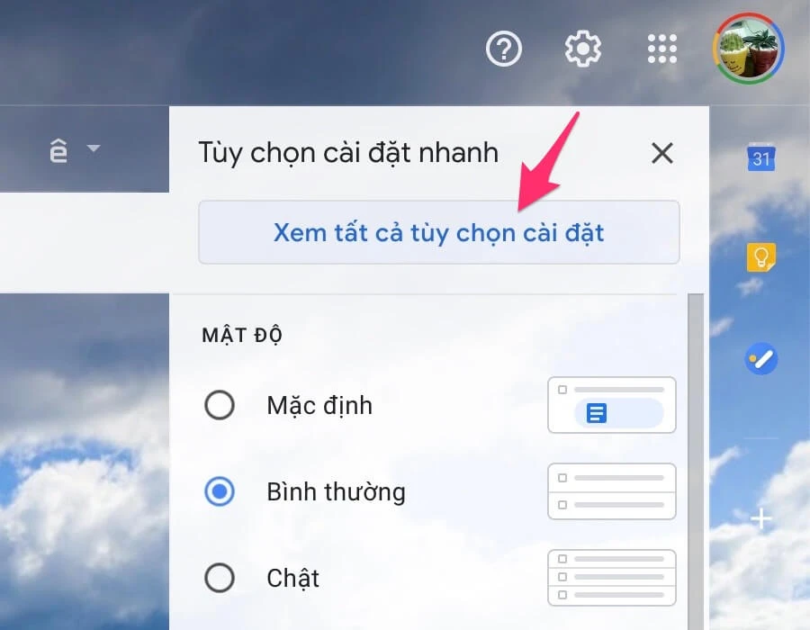 Truy cập vào phần cài đặt trên Gmail (web). Ảnh: MINH HOÀNG
