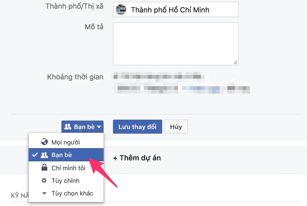 - Bước 2: Tại các mục học hành, địa chỉ, công việc… bạn chọn Edit (chỉnh sửa) và thay đổi lại thành Only Me (chỉ mình tôi) hoặc Friends (bạn bè). Thực hiện tương tự với các mục khác.