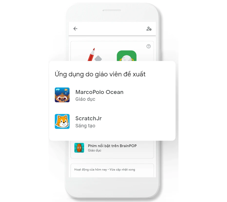 Cha mẹ có thể cho phép hoặc chặn những ứng dụng trẻ muốn cài đặt trên Google Play, cũng như nhận thông báo và trực tiếp tải những ứng dụng được giáo viên đề xuất về thiết bị của con. Family Link cũng cho phép cha mẹ quản lý các giao dịch mua hàng trong ứng dụng và ẩn các ứng dụng cụ thể trên thiết bị của con.
