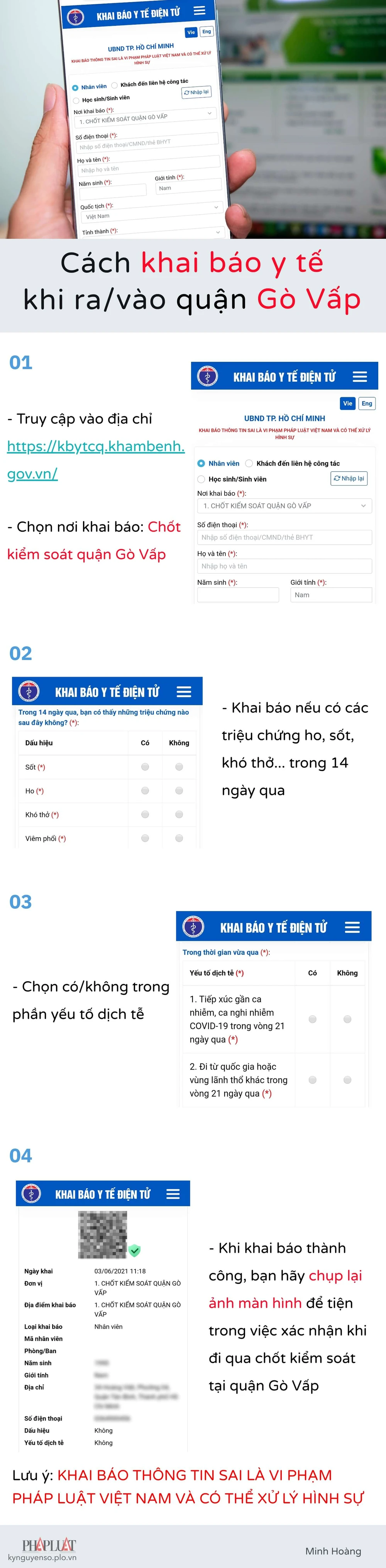 (PLO)- Việc khai báo y tế sẵn tại nhà sẽ giúp người dân tiết kiệm được nhiều thời gian khi ra vào quận Gò Vấp, TP.HCM.