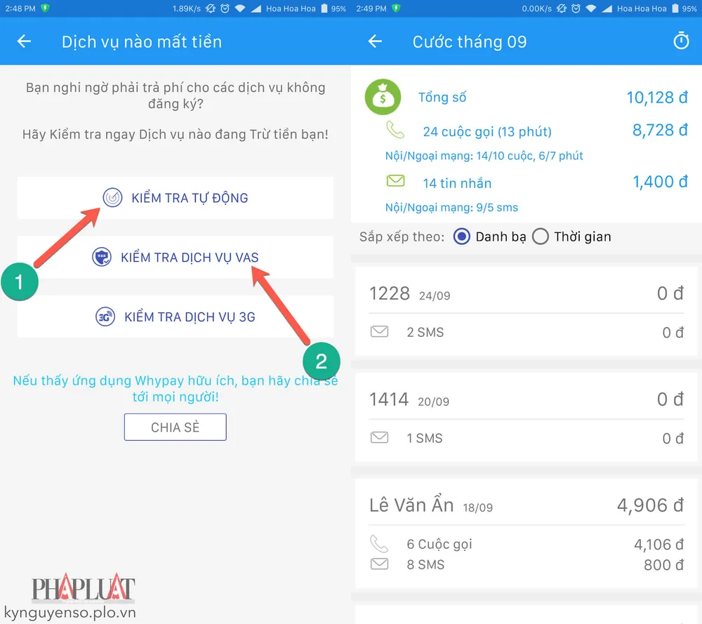 Để mọi thứ có thể khách quan và “minh bạch” hơn, bạn chỉ cần cài đặt ứng dụng Whypay tại http://whypay.vn/ (tương thích Android và iOS) để tự mình kiểm tra các loại cước phí. Ứng dụng này hỗ trợ gần như toàn bộ nhà mạng tại Việt Nam đơn cử như Viettel, MobiFone (phải đăng nhập tài khoản), VinaPhone... cho cả thuê bao trả trước và trả sau.