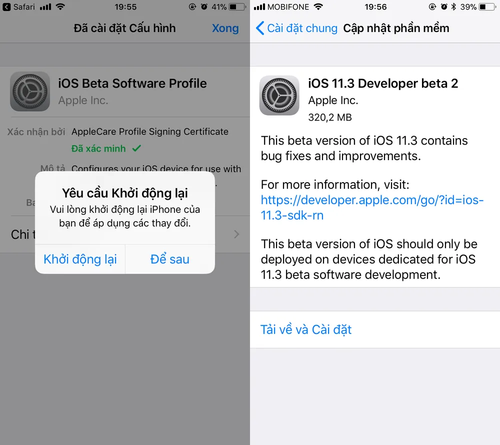 Bên cạnh đó, người dùng cũng có thể tắt tính năng làm chậm iPhone thông qua bản cập nhật iOS 11.3 Beta 2. Tuy nhiên, người dùng cần phải cài đặt Profile nhà phát triển bằng cách mở trình duyệt Safari trên iPhone, iPad và nhấp vào liên kết http://bit.ly/2EhvUAc, nhấn Install để cài đặt và khởi động lại thiết bị.