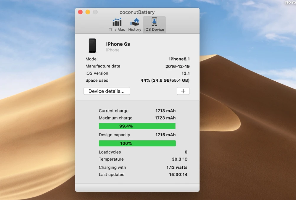 Trước khi trả tiền cho một chiếc iPhone cũ giá rẻ, bạn nên kiểm tra độ chai pin của điện thoại bằng cách sử dụng thử thiết bị một khoảng thời gian xem pin có tụt nhanh không, hay máy có nóng quá mức bình thường hay không. Bên cạnh đó, bạn cũng có thể sử dụng phần mềm CoconutBattery (macOS) để kiểm tra độ chai pin và số lần sạc (Loadcycles) trên iPhone.