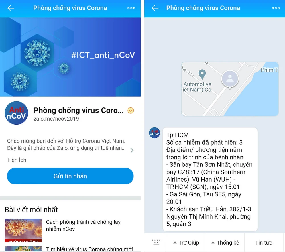 Cách kiểm tra khu vực lây nhiễm virus Corona bằng Zalo