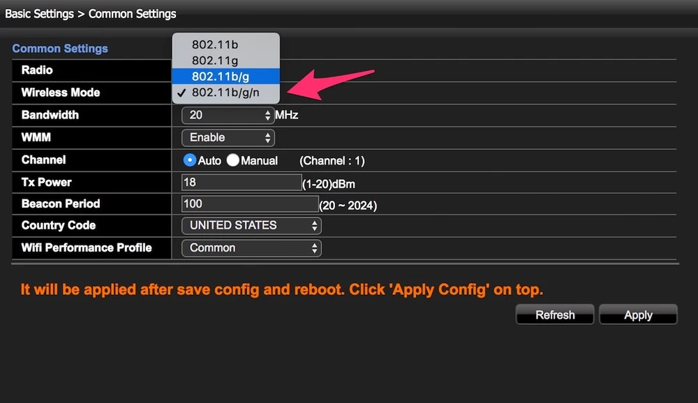 Thay đổi chuẩn kết nối không dây cho phù hợp. Ảnh: TIỂU MINH