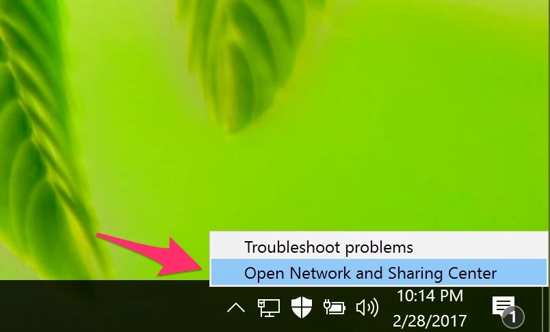 - Bước 1: Đầu tiên, bạn hãy nhấn phải chuột vào biểu tượng mạng ở góc phải bên dưới màn hình và chọn Open Network and Sharing Center > Change adapter settings.