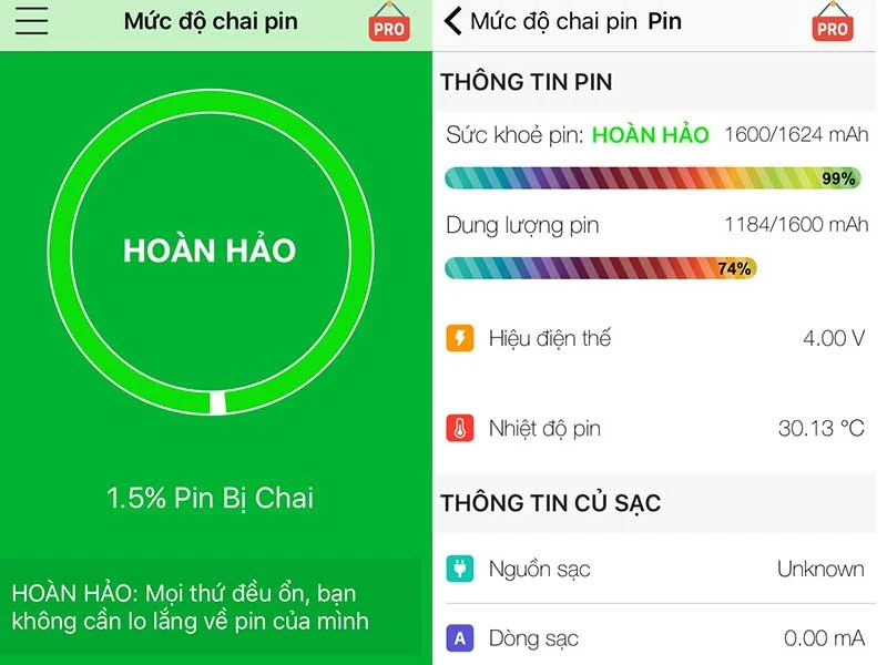 Tương tự, đối với các thiết bị Android, người dùng chỉ cần cài đặt phần mềm AccuBattery tại https://goo.gl/1QOA3z. Giao diện chính của ứng dụng sẽ hiển thị dung lượng và thời gian sử dụng pin còn lại. Nếu mức độ chai pin cao, điều này đồng nghĩa với thời lượng sử dụng điện thoại sẽ nhanh hết. Khi gặp phải trường hợp này, người dùng không nên mua thiết bị để tránh phải tốn thêm tiền đi thay viên pin mới.